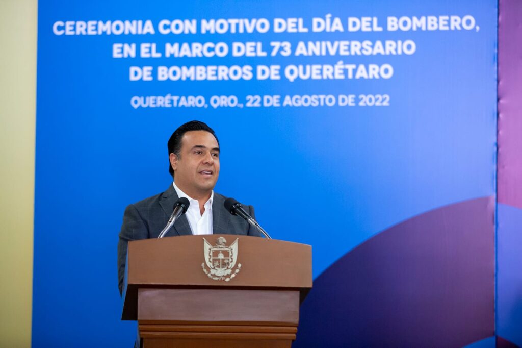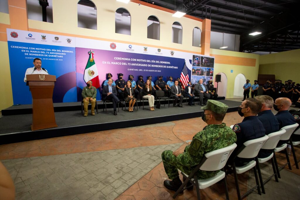 Querétaro, Qro., 22 de agosto de 2022.- En el Día del Bombero, el gobernador Mauricio Kuri celebró el 73 Aniversario de Bomberos de Querétaro reconociendo la convicción y el profesionalismo de mujeres y hombres que con su labor diaria salvaguardan la integridad y el patrimonio de la ciudadanía.