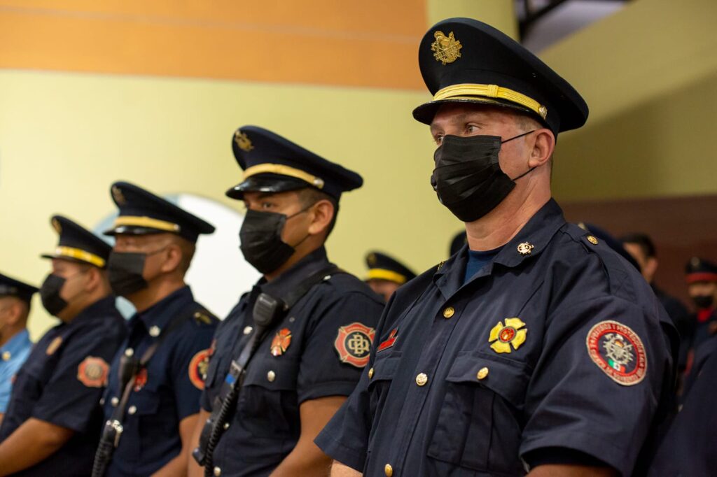 Asimismo, entregó una unidad motobomba escala con un tanque de agua de 500 galones y una bomba de mil 500 galones por minuto, así como constancias a 13 bomberos probatorios que concluyeron satisfactoriamente su adiestramiento y dos reconocimientos a la primera generación femenina por sus 15 años de servicio.