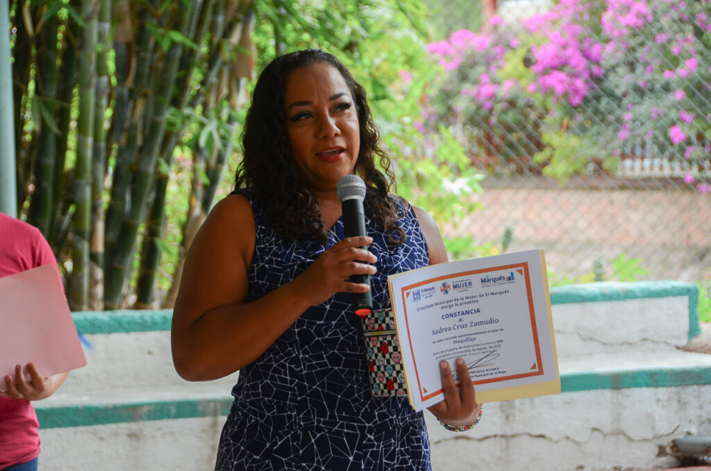 Aunado a esto se reconoció a las mujeres que concluyeron los talleres de corte de uñas, corte de cabello, así como maquillaje. Donde participaron mujeres de las localidades de Amazcala, El Paraíso, Los Héroes, Miranda.
