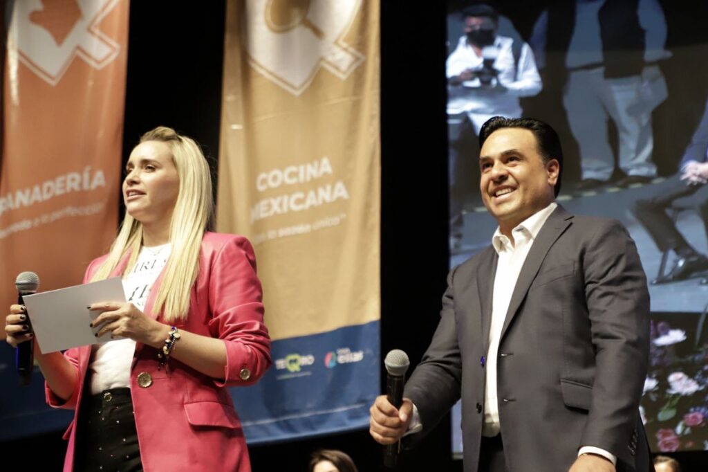 Querétaro, Qro., 23 de agosto de 2022.- El alcalde de Querétaro, Luis Nava, y su esposa, la presidenta del DIF municipal Arahí Domínguez, encabezaron un evento del programa “Con Ellas”, en el que entregaron 18 certificados a mujeres que participaron en talleres del Instituto de Capacitación para el Trabajo del Estado de Querétaro (Icateq) durante la primera generación de dicha acción de gobierno.