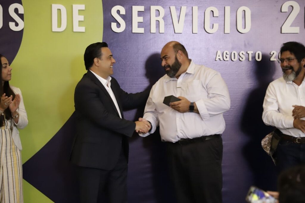 Este año se reconoció a 535 trabajadores: 155 con 10 años de servicio, 224 con 15 años, 89 con 20 años, 48 con 25 años y 19 colaboradores con 30 años en el servicio público. La mayoría de los reconocidos pertenecen a la Secretaría de Seguridad Pública Municipal, Servicios Públicos Municipales, Movilidad y Desarrollo Humano y Social.