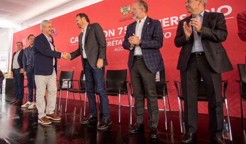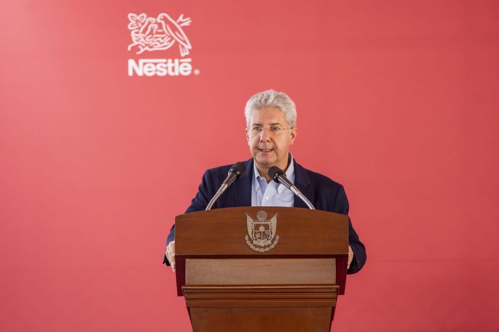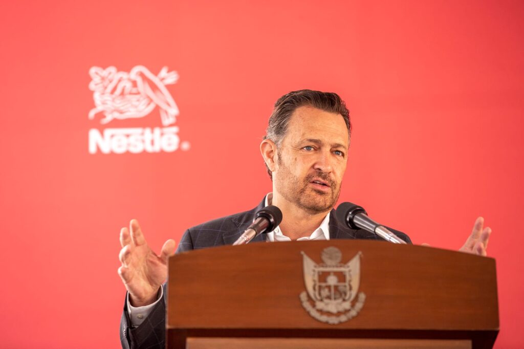 Querétaro, Qro., 28 de agosto de 2022.- El gobernador Mauricio Kuri encabezó el evento por el 75 aniversario de la llegada a Querétaro de la fábrica de Carnation, acto en el que Nestlé México anunció una inversión de 2 mil 550 millones de pesos para modernizar y mejorar las operaciones de sus instalaciones en el estado.