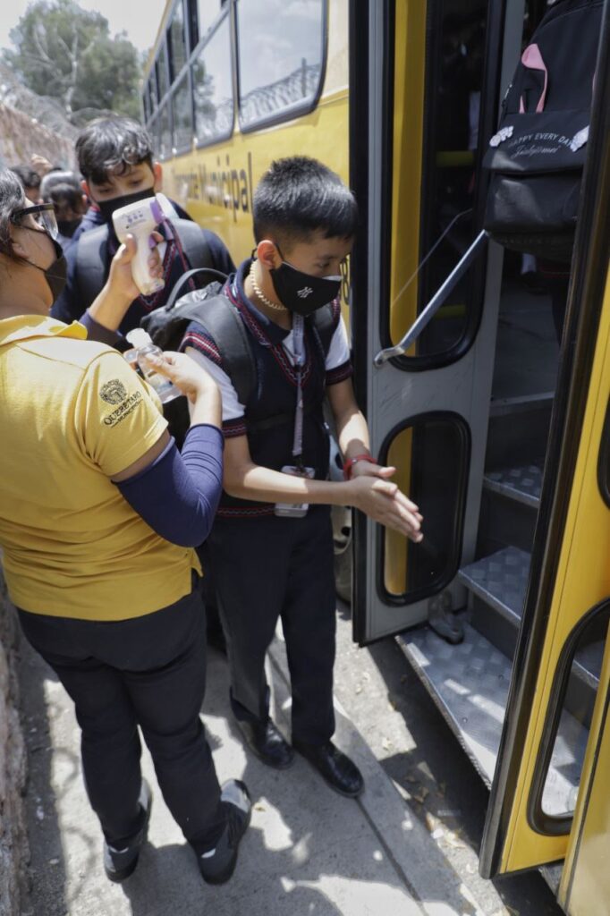 Querétaro, Qro., 30 de agosto de 2022.- La Secretaría de Movilidad del municipio de Querétaro informa que los programas de Transporte Escolar Gratuito y Transporte Universitario Gratuito benefician este años a más de 3 mil estudiantes, quienes son trasladados a sus centros educativos en 70 unidades, de ida y de regreso a casa.