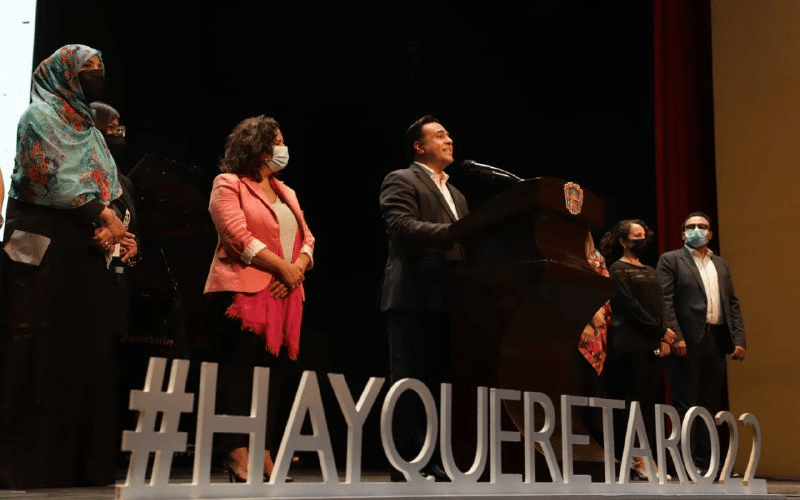 Querétaro, Qro., 31 de agosto de 2022.- Con un concierto del pianista sonorense Jorge Viladoms en el Teatro de la Ciudad, el presidente municipal, Luis Nava y la secretaría de Turismo en el estado, Mariela Morán, en compañía de Cristina Fuentes La Roche, directora Internacional del Hay Festival y Tawakkol Karman, premio Nobel de la Paz, inauguraron las actividades de la séptima edición del Hay Festival con sede en Querétaro.