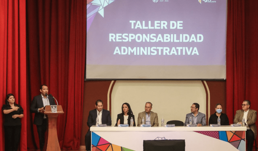 San Juan del Río, Qro., 1 de septiembre de 2022.- Este jueves, el presidente municipal de San Juan del Río, Roberto Cabrera Valencia, encabezó el Taller de Responsabilidad Administrativa, el cual tuvo como fin concientizar y capacitar a los servidores públicos de todos los niveles sobre la ética y la prevención de actos de corrupción. Ahí, el secretario de la Contraloría estatal, Oscar García González, resaltó que el 99.9 por ciento de los funcionarios municipales cumplió con su declaración patrimonial.