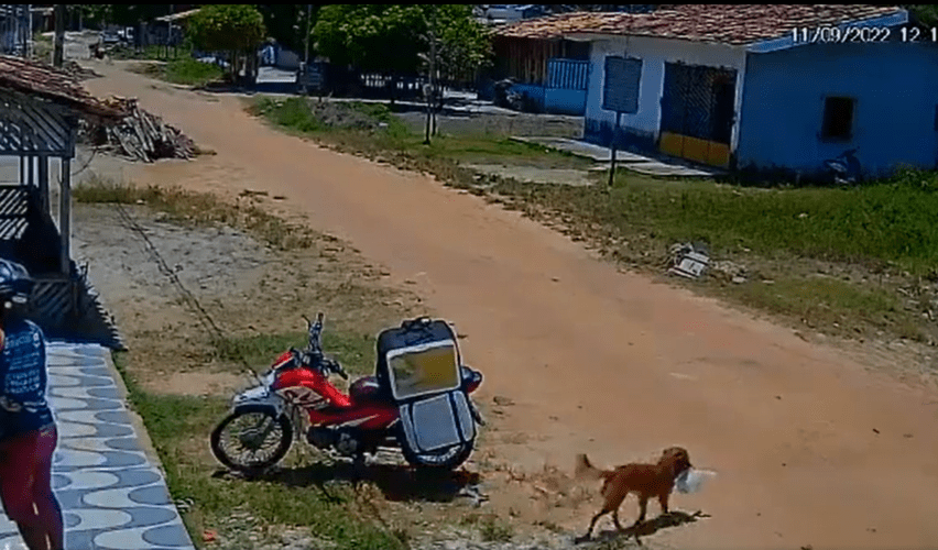Cuando el repartidor se acercó a buscar uno de los paquetes no lo encontró. El joven motociclista comenzó a rastrear la bolsa, pero desapareció como por arte de magia junto con el perro, que desapareció de la “escena del crimen” de forma sigilosa.