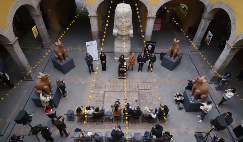Querétaro, Qro., 21 de octubre de 2022.- Las secretarías de Cultura y de Turismo del municipio de Querétaro presentaron el Festival de Día de Muertos 2022, que contará con el recorrido Mictlán, Camino al Inframundo, el cual se podrá disfrutar del 28 de octubre al 6 de noviembre en el Centro Histórico. Habrá altares de muertos, esculturas prehispánicas, luces y sonidos para celebrar esta importante tradición.
