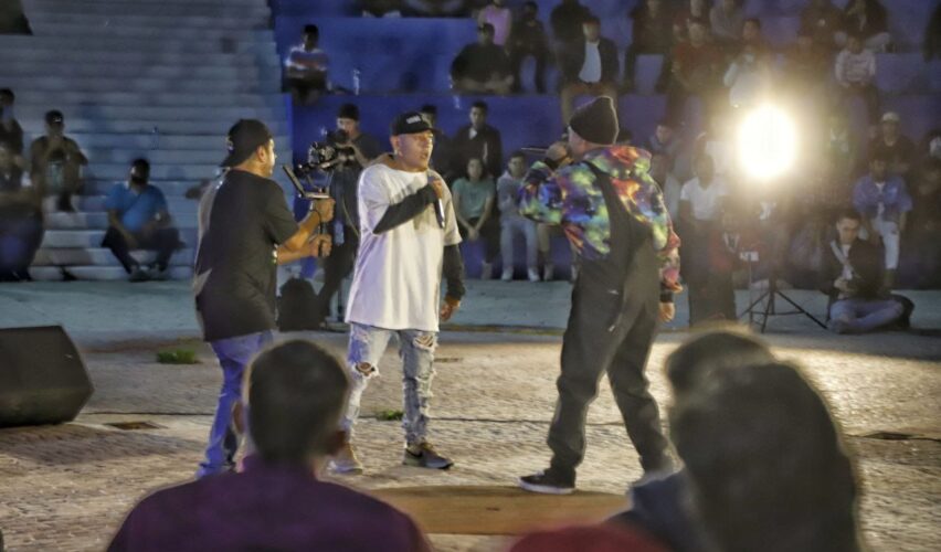 Querétaro, Qro., 13 de noviembre de 2022.- En un ambiente de fiesta y sana convivencia, se realizó este sábado por la noche la final de Freestyle Al Parque, un torneo de arte y rap urbano que convocó a jóvenes de todo el país. El evento tuvo como sede el Parque Bicentenario y Nota Roja fue el ganador.