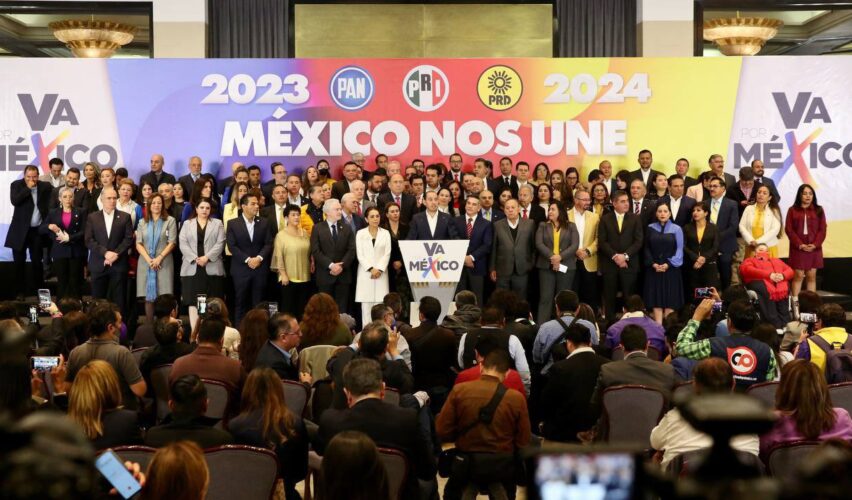Ciudad de México, 13 de enero de 2023.- Los dirigentes de PAN, PRI y PRD se rencontraron en una conferencia de prensa para presentar sus planes de cara a las elecciones de este año a las gubernaturas de Coahuila y el Estado de México, así como para los comicios de 2024, en los cuales se elegirá la presidencia de la república, la jefatura de gobierno de la capital del país, varias gubernaturas y los legisladores de ambas cámaras.