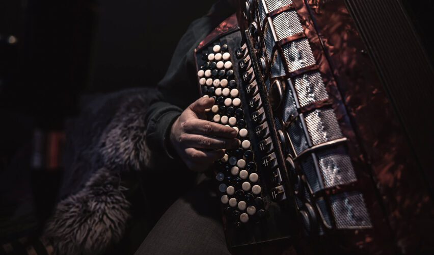 Descansa el acordeón en el regazo, la voz se agita: