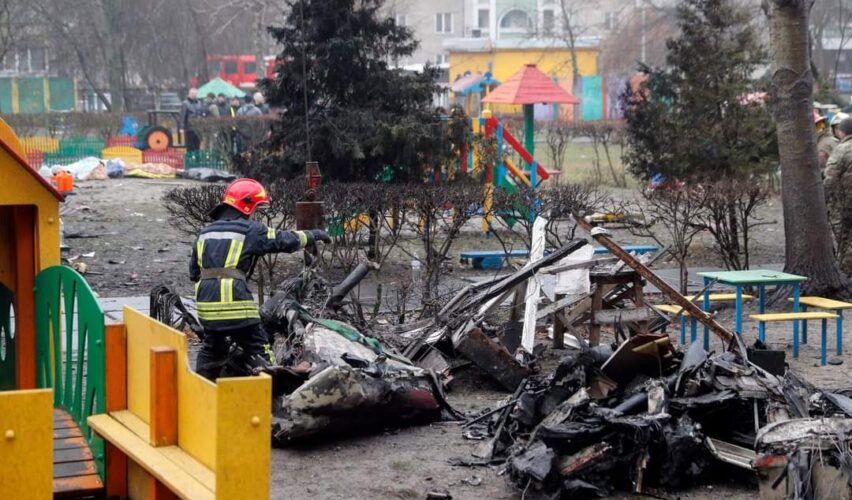El jefe de la administración militar regional de Kiev, Oleksiy Kuleba, informó que el helicóptero cayó cerca de una guardería y un edificio de departamentos.