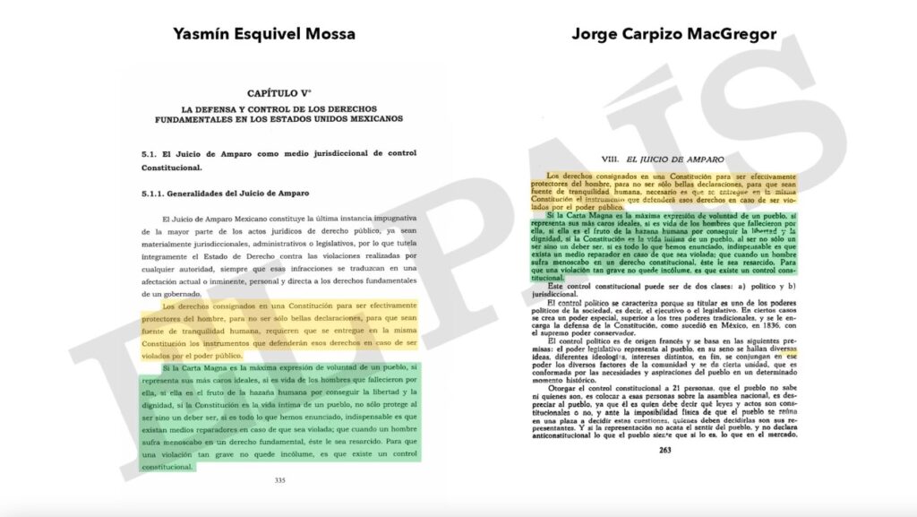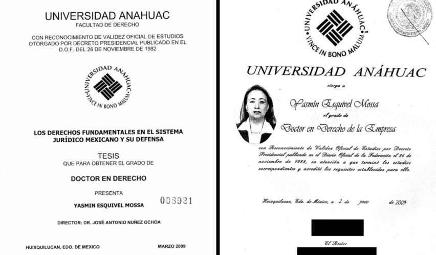 24 de febrero de 2023.- El diario español El País publicó este viernes un reportaje en el que evidencia plagios en la tesis con la cual la ministra de la Suprema Corte de Justicia de la Nación (SCJN) Yasmín Esquivel obtuvo en 2009 el grado de doctora en derecho por la Universidad Anáhuac, titulada Los derechos fundamentales en el sistema jurídico mexicano y su defensa. El prestigio de Esquivel Mossa está en entredicho desde que el 21 de diciembre pasado el medio Latinus publicara una investigación sobre el plagio de la tesis de licenciatura de la ministra, realizada en la UNAM, transgresión que la institución académica terminó por reconocer.
