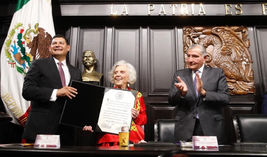 Ciudad de México, 19 de abril de 2023.- La escritora y periodista Elena Poniatowska recibió este miércoles la Medalla Belisario Domínguez, máximo reconocimiento que entrega el Senado de la República a mexicanas y mexicanos destacados.