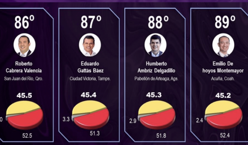 En agosto de 2022, el edil sanjuanense había obtenido la posición 59, con 47.5% de aprobación ciudadana. Es decir, en ocho meses se desplomó casi 30 lugares y hoy ya presenta una desaprobación del 52.5%.