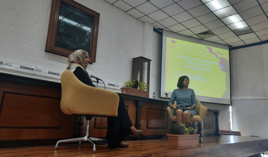 Querétaro, Qro., 2 de septiembre de 2022.- La población joven y las mujeres son elementos valiosos para cambiar la sociedad, aseguró la ganadora del premio Nobel Tawakkol Karman, en conversación con la periodista Lorena Alcalá Cabrera en la Universidad Autónoma de Querétaro (UAQ), en el marco del Hay Festival.