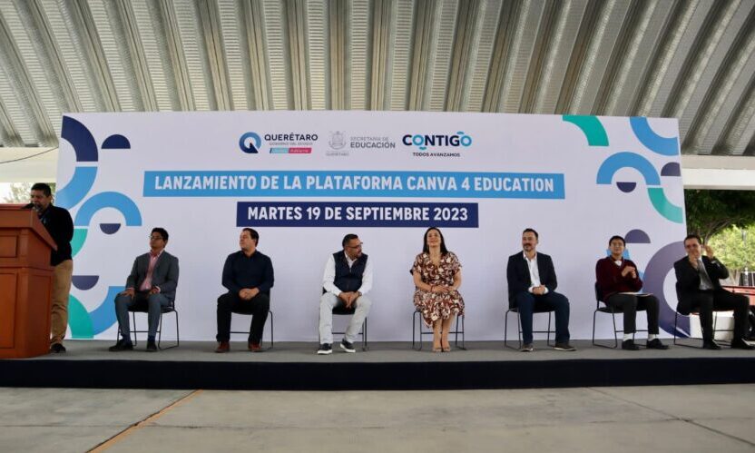 Querétaro, Qro., 19 de septiembre de 2023.- Con la finalidad de acercar herramientas de comunicación para el fortalecimiento de las habilidades blandas en 559 mil alumnos de educación básica y media superior, y 15 mil 500 docentes, la secretaria de Educación en la entidad, Martha Elena Soto Obregón, encabezó el lanzamiento de la plataforma CANVA 4 Education.