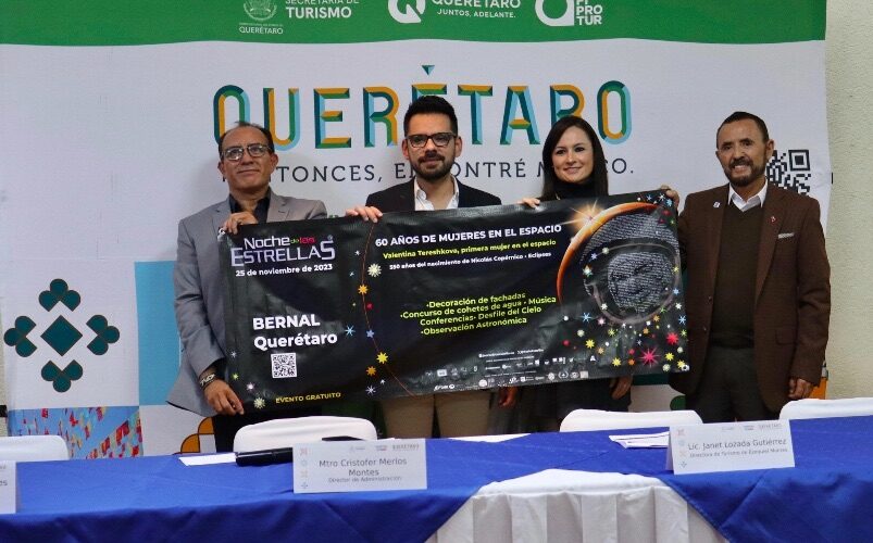 Ezequiel Montes, Qro., 15 de noviembre de 2023.- Se realizará una nueva edición del festival Noche de las Estrellas el sábado 25 de noviembre en Bernal, anunciaron autoridades estatales y municipales, encabezadas por el director administrativo de la Secretaría de Turismo, Cristofer Merlos Montes.