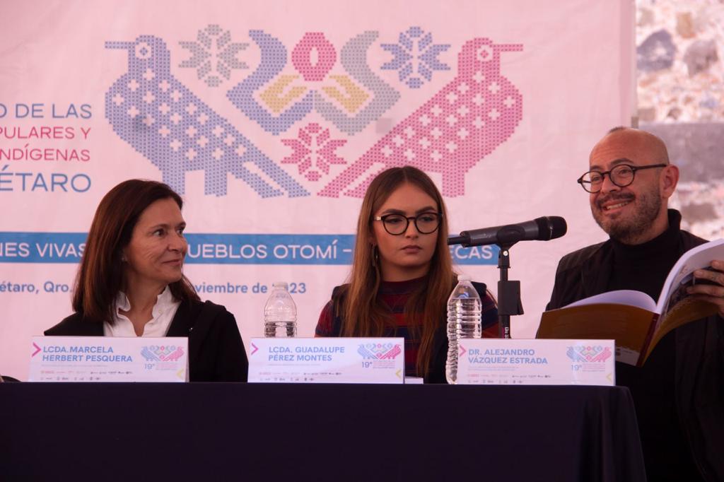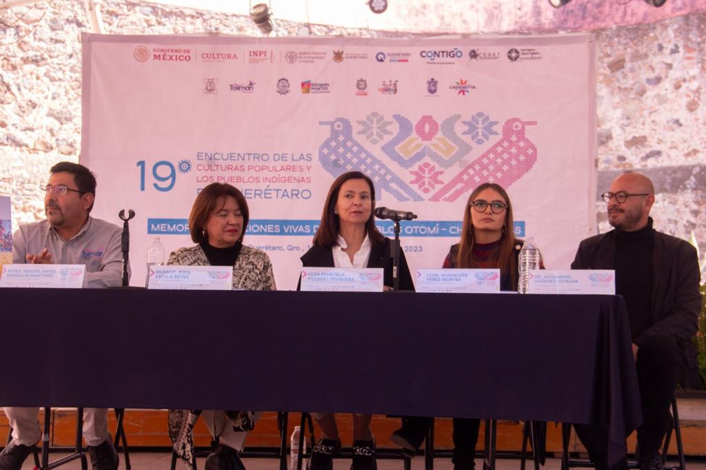 En el marco de la inauguración del Encuentro de las Culturas Populares y los Pueblos Indígenas 2023, la funcionaria estatal expresó que el plan contiene análisis, reflexiones, preocupaciones y propuestas para mantener con vida el Patrimonio Cultural del Semidesierto queretano.