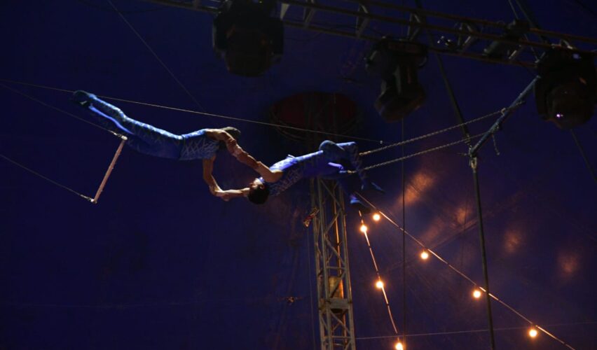 Querétaro, Qro., 7 de diciembre de 2023.- Las acrobacias, vuelos, números cómicos y demostraciones de fuerza o equilibrio que ejecutan los artistas del circo implican años de dedicación y entrenamiento.