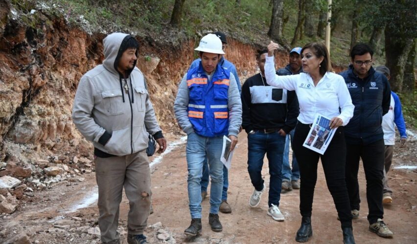 Querétaro, Qro., 22 de diciembre de 2023.- La titular de la Comisión Estatal de Infraestructura (CEI), Sonia Carrillo Rosillo, acudió a constatar los avances de la segunda etapa de la modernización del camino a la localidad de Cuatro Palos, en el municipio de Pinal de Amoles.