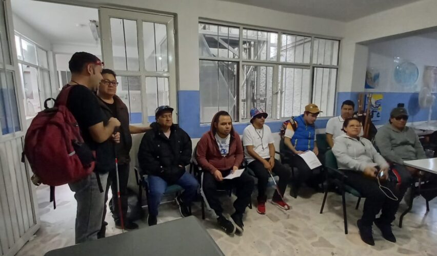 Querétaro, Qro., 31 de enero de 2024.- Las consejeras Alma Fabiola Martínez Rodríguez y Guadalupe Gutiérrez Herrera, integrantes del Consejo Local en el estado de Querétaro, impartieron en las instalaciones de la Unión de Minusválidos de Querétaro IAP una plática sobre el Protocolo implementado por el INE para apoyar a personas con discapacidad visual en su proceso de acreditación como personas observadoras electorales para el Proceso Electoral Concurrente 2023-2024.