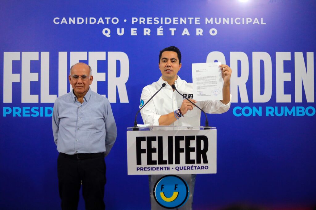Querétaro, Qro., 17 de abril de 2024.- Felifer Macías, candidato a la presidencia municipal de Querétaro por PAN, PRI y PRD, presentó su declaración 5 de 5 en la Universidad Autónoma de Querétaro (UAQ), con el fin de que la ciudadanía conozca los bienes con los que cuenta, y como muestra de su compromiso con la transparencia.