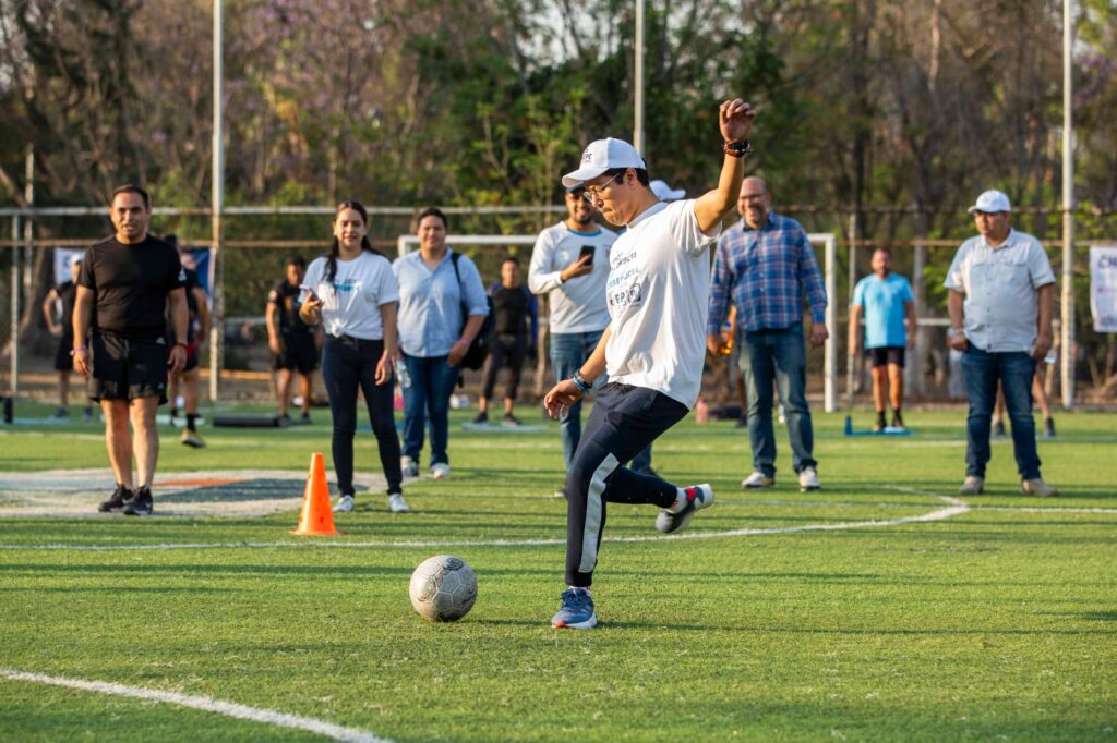 Por la mañana, el candidato participó en una activación física en el Parque de Tejeda, acompañado de las y los deportistas, en la que practicó calistenia, running y jugó fútbol.