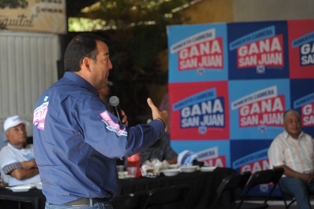 “Que la cara fuerte del proyecto y lo grande sea San Juan, que en esa marca nadie está peleado, nadie está dividido, nadie está confrontado; toda la gente que dirige San Juan o que sigue a ustedes, en el caso del comercio, a ustedes los respeta, están con ustedes, saben que quieren lo mejor para su sector porque aquí vivimos, aquí vivimos y aquí obtenemos ¿Qué obtenemos? Pues lo más importante que es lo que sostiene nuestra economía familiar, hasta también lo más importante que es la calidad de vida, la paz, la tranquilidad, nuestras buenas costumbres”, dijo Cabrera Valencia.