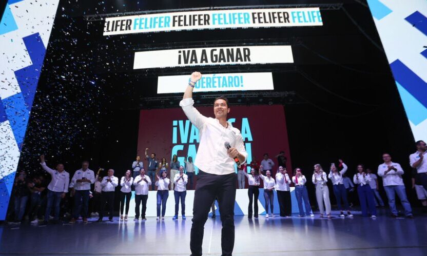 Querétaro, Qro., 20 de abril de 2024.- Ante más de cinco mil personas, el candidato a la presidencia municipal de Querétaro por el PAN, PRI y PRD, Felifer Macías Olvera, presentó los ejes rectores para seguir teniendo un municipio con orden y seguro a través de: “Policía Presente”, “Calles Vivas”, “Obras en las Calles, Barrios y Comunidades”, “Medio Ambiente”, “Apoyo a la Economía Familiar” y “Transparencia”.