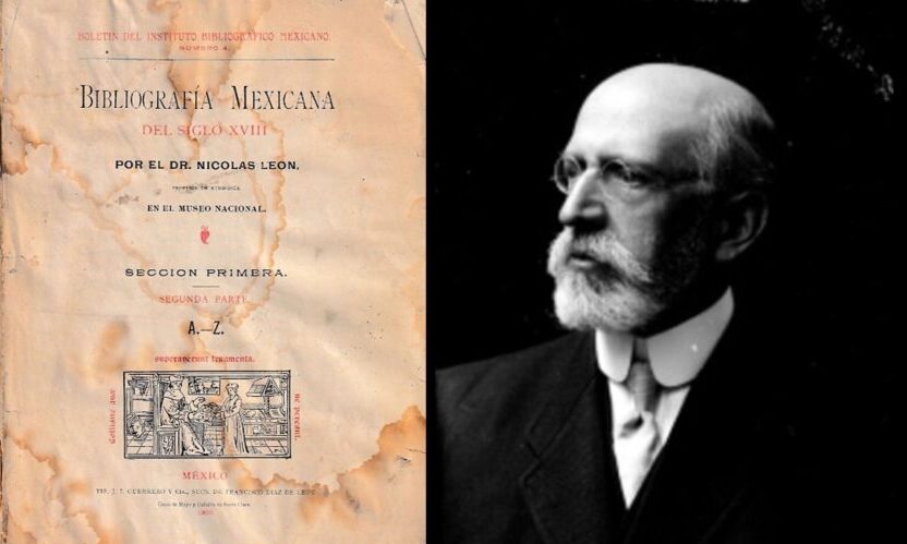Quien está en la senda del libro, investigadores, escritores, historiadores o un simple y llanero bibliófilo, no puede caminar, dar pasos firmes, sin la interacción que debe uno tener con los libreros. Ellos, los libreros, son una línea invisible de la directriz de la investigación, la escritura y, en fin, la lectura. Traigo a colación porque hace unos días al librero conspicuo Javier Rosas le calló entre sus manos una joya bibliográfica y tuvo la gentileza de tenerme en su puesto de combate para adquirirlo: Bibliografía mexicana del siglo XVIII, por el Dr. Nicolás León. Obra impresa en 1903. Pocos son, muy pocos, los trabajos de tal jerarquía, de trabajo sin descanso, de estar a la deriva de los impresos, pescador incansable de libros y autores. Sirva como un ejemplo, el trabajo de don Joaquín García Icazbalceta (1825-1894), su Bibliografía mexicana del siglo XVI. Este trabajo del Dr. Nicolás León fue editado por el Instituto Bibliográfico Mexicano, fundado en 1899.