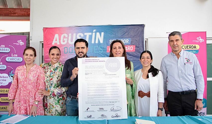 Querétaro, Qro., 21 de mayo de 2024.- “El destino de nuestro país depende más del ejercicio activo de la ciudadanía que del mero servicio público”, dijo Agustín Dorantes, candidato al Senado por la coalición Fuerza y Corazón por México, al firmar la Agenda contra la Violencia Sexual Infantil de la fundación Vida Plena I.A.P.