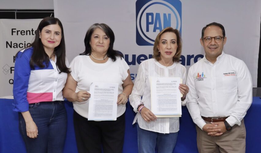 Durante la firma, Lupita Murguía estuvo acompañada por la dirigente estatal del PAN, Leonor Mejía así como diferentes candidatas y candidatos panistas que también se sumaron a estos compromisos.