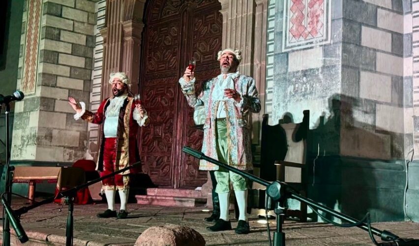 Querétaro, Qro., 6 de septiembre de 2024.- El atrio del templo de Santa Rosa de Viterbo lució un lleno total para la función conmemorativa que el grupo de teatro Cómicos de la Legua de la Universidad Autónoma de Querétaro (UAQ) ofreció para celebrar sus primeros 65 años.
