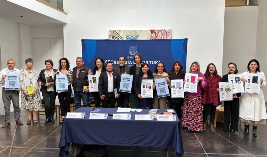 A la rueda de prensa asistieron la encargada del Fondo Editorial de Querétaro y la Librería Cultural del Centro, Lucía García García; la presidenta del Consejo Literario de Querétaro, Dalia Larisa Juárez Otero; la directora de Educación Artística y Servicios Culturales de la SECULT, Claudia Nevárez Lázaro, y el escritor Magdiel Torres Magaña.