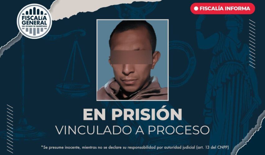 Querétaro, Qro., 15 de marzo de 2025.- La Fiscalía General del Estado de Querétaro informa que se obtuvo la vinculación a proceso de una persona por ser probable autor del delito de homicidio calificado, hechos registrados en un centro de rehabilitación ubicado en el municipio de Corregidora.