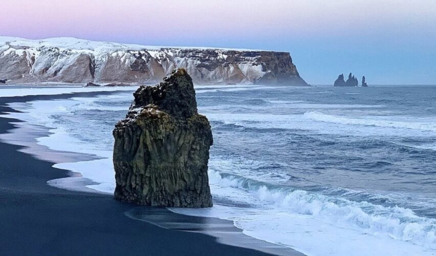 Nos hallamos en la playa de Reynisfjara. Nuestro objetivo es admirar su inhóspita belleza (valga el oxímoron), con su arena negra de origen volcánico, sus extrañas columnas de basalto de forma hexagonal y sus rocas escarpadas que sobresalen del mar (no es casualidad que este lugar haya sido set de Juego de tronos, Star Wars y Star Trek). Sin embargo, no es posible acercanos mucho. En invierno son frecuentes las fuertes ventiscas como la que hallamos. Está documentado que en los últimos años han muerto ahí al menos seis personas, quienes al estar en la playa fueron arrastradas por olas de hasta 40 metros.
