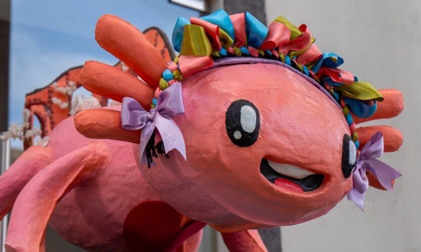 Creajolote 2024 se compone de 15 piezas de cartonería en forma de ajolote y puede visitarse en las instalaciones del MUSAH, ubicado en calle Josefa Ortiz de Domínguez no. 1, El Pueblito.