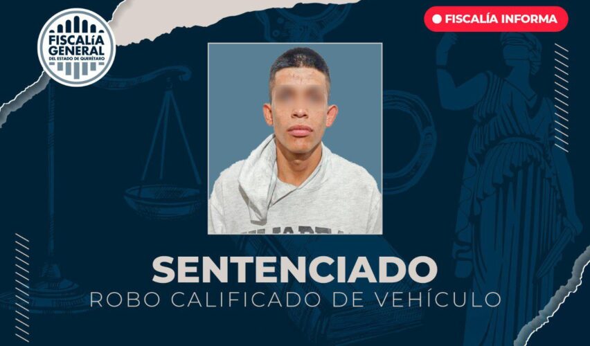 Querétaro, Qro., 11 de junio de 2025.- La Fiscalía de Querétaro logró que un hombre fuera sentenciado a más de 4 años de prisión por robo calificado de vehículo, debido a un delito ocurrió en la calle Hacienda Temixco del fraccionamiento Hacienda Santa Rosa, municipio de Querétaro, el 3 de junio de 2022.
