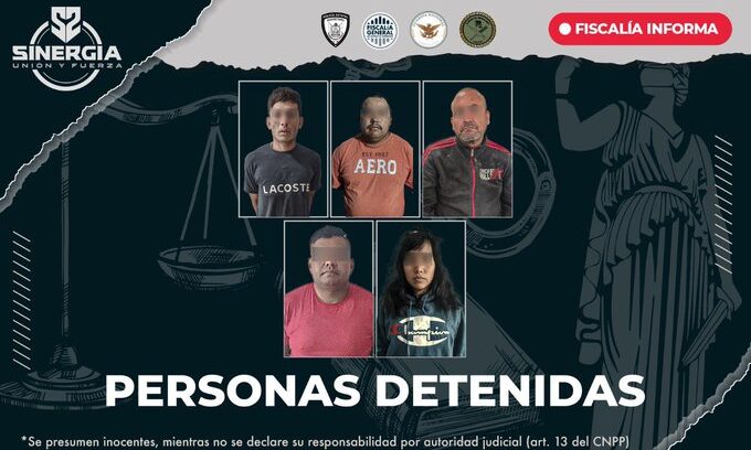 Querétaro, Qro., 1 de julio de 2025.- Cinco personas fueron detenidas por delitos contra la salud durante cateos realizados en 11 domicilios del municipio de El Marqués, específicamente en las colonias San Vicente Ferrer, Los Héroes, Piedad y Sendas Residencial.
