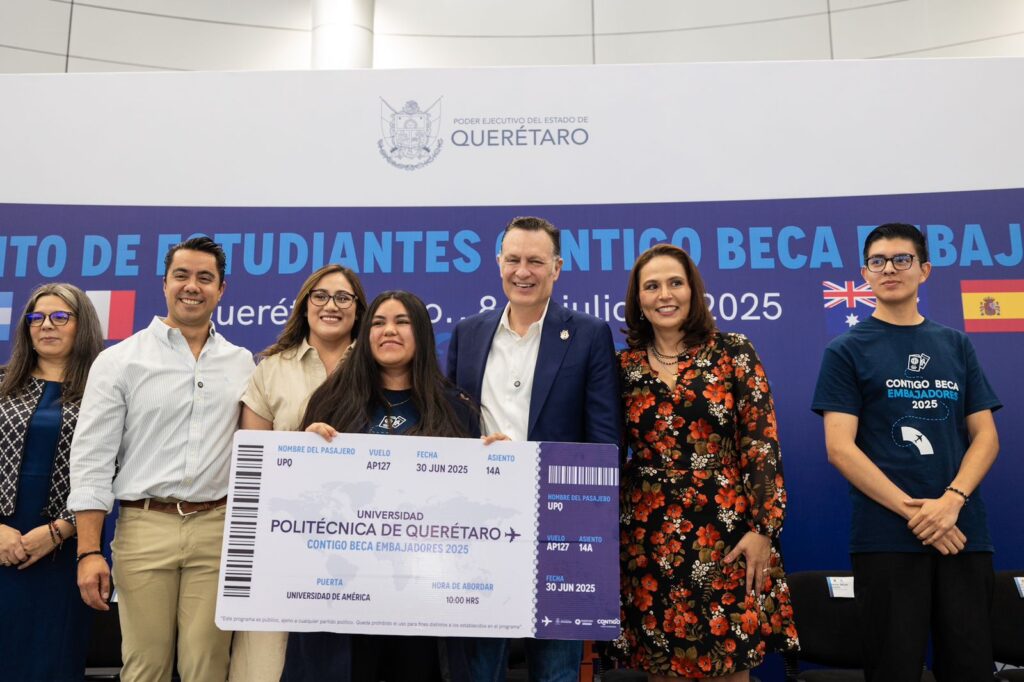 “La Beca Embajadores es una de las iniciativas más potentes del gobierno del estado de Querétaro en materia de educación superior. Esta estrategia reconoce el talento que conecta a nuestros jóvenes con el mundo y que muestra que en Querétaro se cree en las y los jóvenes”, manifestó.