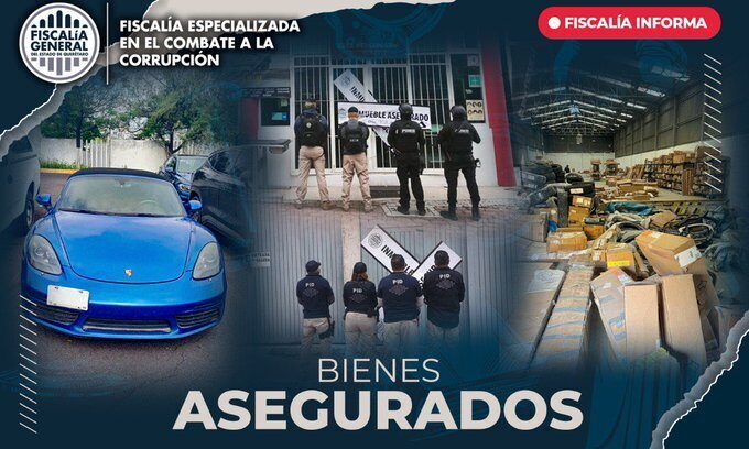 Por este caso, se aseguraron: documentos contables, fiscales y financieros; equipos de cómputo y almacenamiento de información, un vehículo de alta gama, diversas refacciones para vehículos de lujo y dos inmuebles donde se desarrollaban las operaciones.