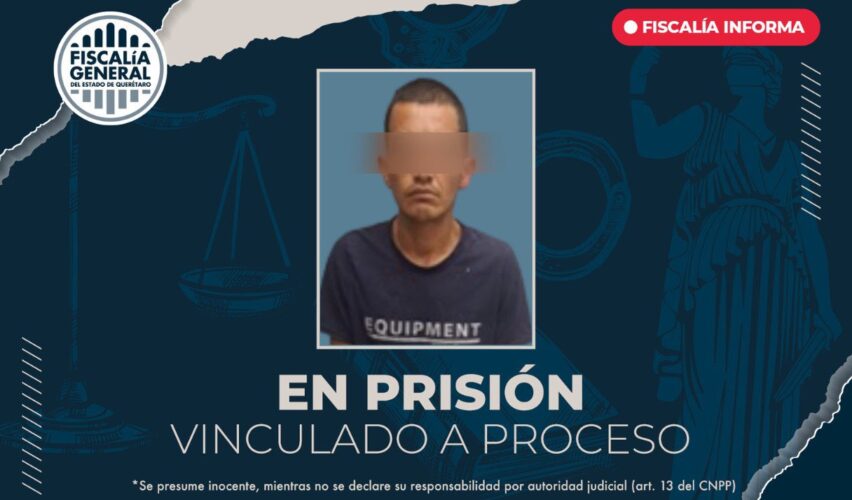 San Juan del Río, Qro., 12 de agosto de 2025.- La Fiscalía de Querétaro informó que fue vinculado a proceso un sujeto por los delitos de robo calificado y privación de la libertad, debido a hechos ocurridos en Ezequiel Montes el pasado 19 de julio.
