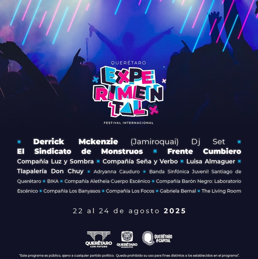En cuanto al Festival Querétaro Experimental, señaló que se realizará del 22 al 24 de agosto, con tres sedes, que son el Jardín Guerrero, la Cineteca Rosalío Solano y el Teatro de la Ciudad, en donde se presentarán 20 espectáculos con 101 artistas, nueve compañías locales, cuatro nacionales y tres internacionales.
