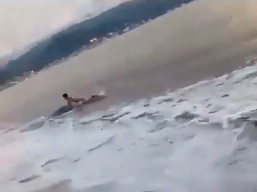 Puerto Vallarta, Jal., 27 de agosto de 2025.- Un cocodrilo casi le suelta un mordisco a un joven que disfrutaba de la playa Bocanegra en Puerto Vallarta, Jalisco. El incidente fue grabado y difundido en redes sociales.