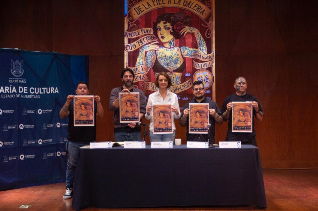 Querétaro, Qro., 2 de septiembre de 2025.- La secretaria de Cultura del estado, Ana Paola López Birlain, anunció la cuarta edición del Encuentro Nacional de Educación Comunitaria para Artistas Corporales “De la piel a la galería”, que se llevará a cabo los días 5 y 6 de septiembre en el Centro de Arte Emergente (CAE), para celebrar disciplinas como el tatuaje, la perforación y la modificación corporal como formas legítimas de arte, expresión y resistencia.