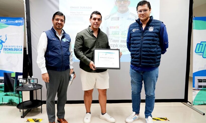 Corregidora, Qro., 19 de septiembre de 2025.- La Universidad Tecnológica de Corregidora (UTC) recibió la visita del piloto profesional y Top-10 de la México Series de la Asociación Nacional de Automovilismo para Autos Stock (Nascar, por sus siglas en inglés), Omar Jurado, quien convivió con estudiantes y presentó la conferencia: “Velocidad en la pista, responsabilidad en la calle”, con el propósito de fomentar la conciencia vial y la conducción responsable entre la juventud universitaria.