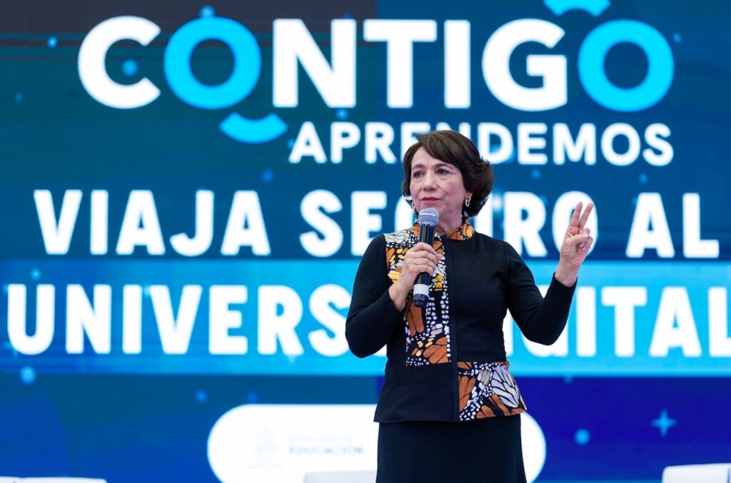 La funcionaria moderó un conversatorio con el gobernador e invitados especiales como la economista, exsecretaria de Educación Pública y promotora de civismo digital Josefina Vázquez Mota; el presidente de la Fundación Teletón y promotor de derechos humanos Fernando Chobi Landeros; y la académica, investigadora y especialista en alfabetización digital Marcela Momberg.
