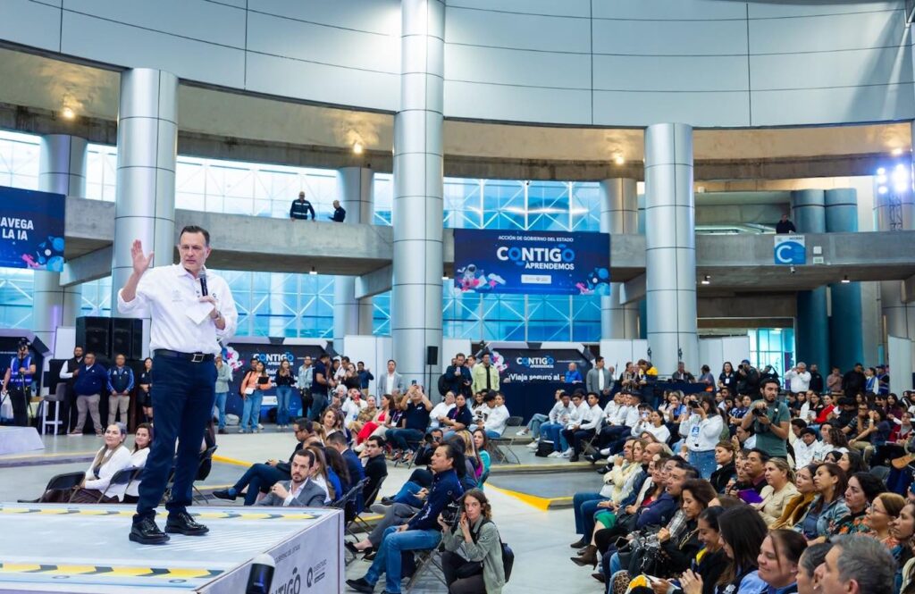Querétaro, Qro., 26 de septiembre de 2025.- El gobernador Mauricio Kuri inauguró el evento Contigo Aprendemos 2025, el cual promueve el uso responsable de la tecnología y la construcción de entornos digitales seguros para niñas, niños y adolescentes, a través de conferencias, talleres, presentaciones artísticas, zonas interactivas y espacios de convivencia.