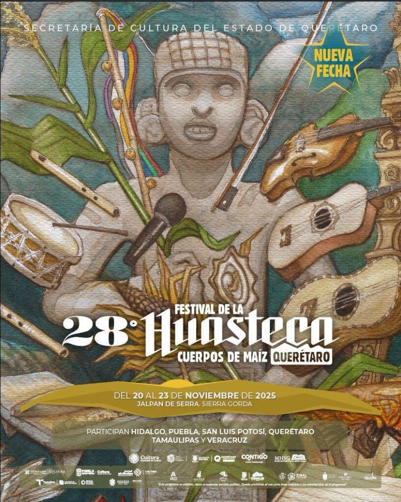 De igual forma, del 20 al 23 de noviembre, Jalpan de Serra recibirá a más de 400 portadores y portadoras de tradición de los seis estados que integran la Huasteca —Hidalgo, Puebla, Veracruz, Tamaulipas, San Luis Potosí y Querétaro—, en la edición número 28 del festival que en esta ocasión tiene como eje temático “Los Cuerpos de Maíz”, un nombre que evoca la vida que se siembra en el cuerpo, la historia que se transmite en la palabra y la identidad que florece, como la milpa, cuando se vive en comunidad.