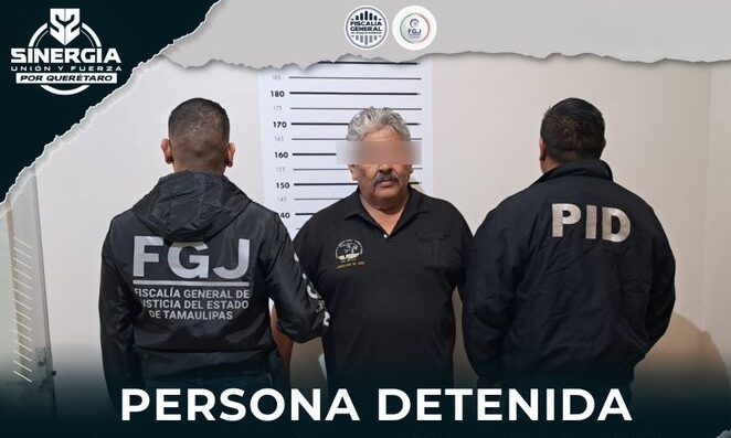 Querétaro, Qro., 20 de octubre de 2025.- La Fiscalía de Querétaro colaboró en la detención de un hombre buscado por delitos de violación e impudicia, cometidos en Matamoros, Tamaulipas. La institución homóloga tamaulipeca solicitó colaboración para aprehender al sujeto.